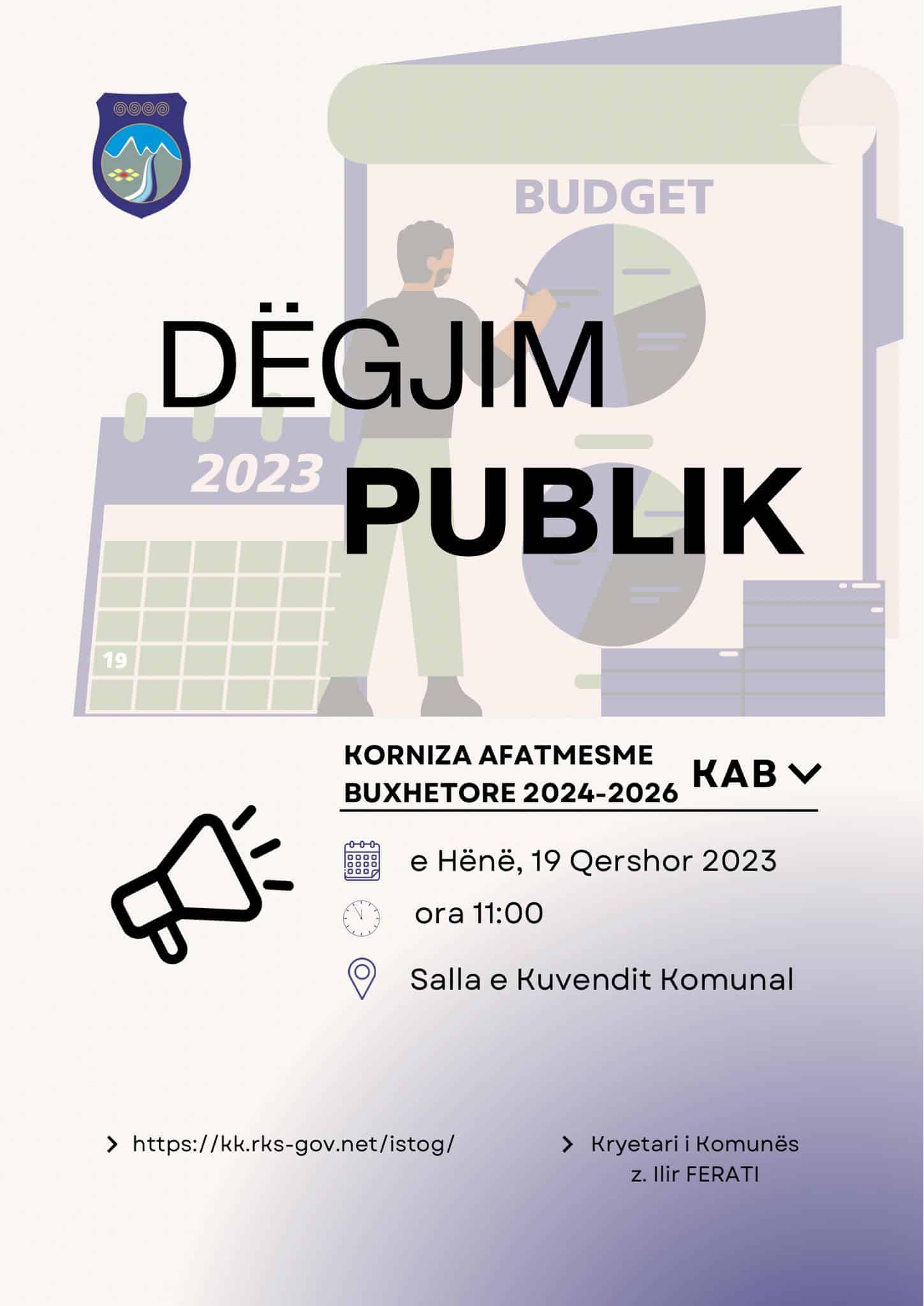 NJOFTIM PËR DËGJIM PUBLIK PËR KAB 2024-2026 (SALLA E KUVENDIT KOMUNAL)